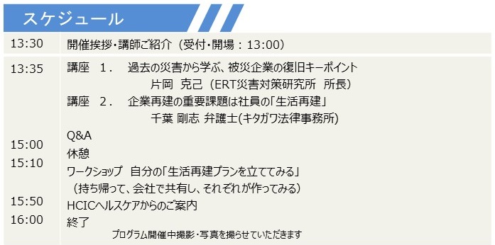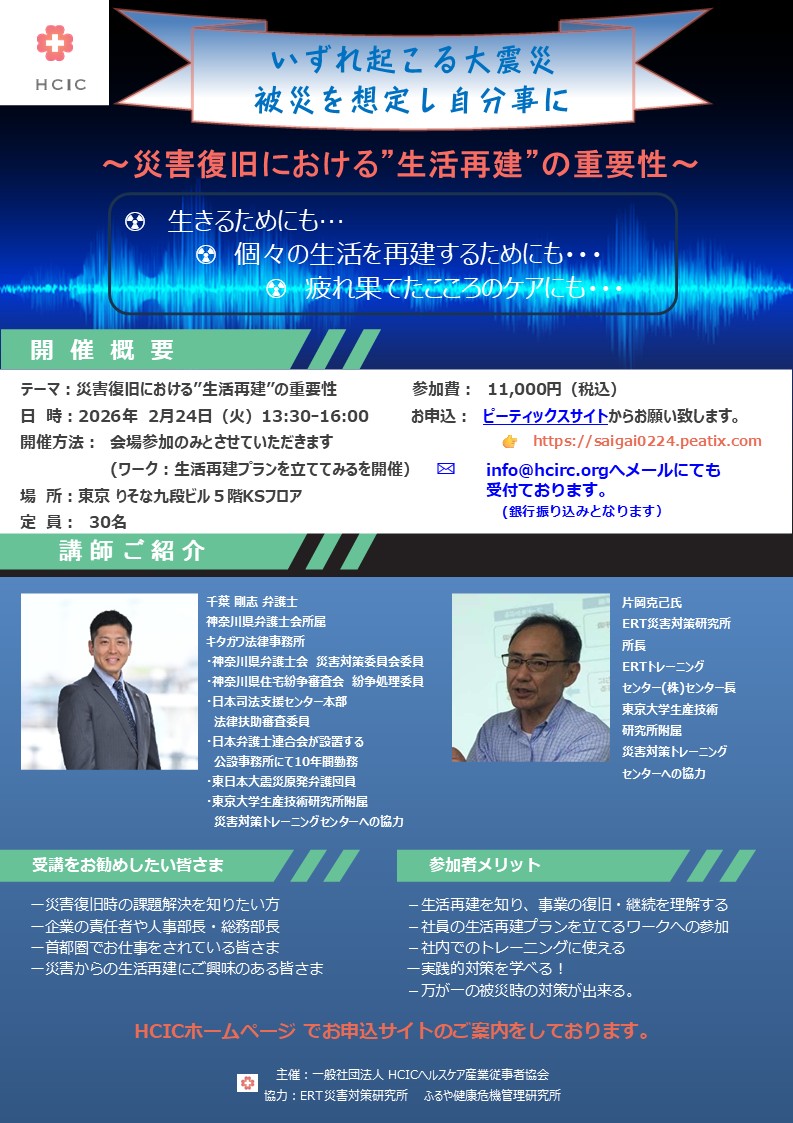 HCIC特別講座 自然災害被災後の生活再建の重要性