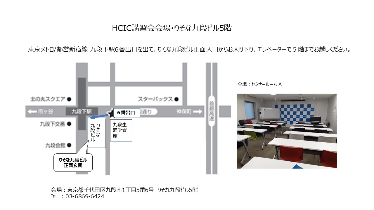 会場情報:東京都千代田区九段南1丁目5番6号りそな九段ビル5階