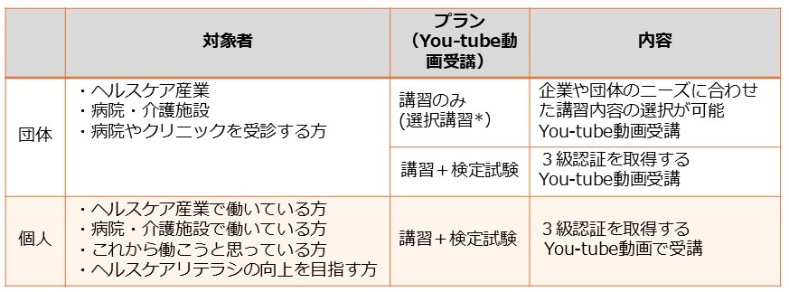 ヘルスケア産業で働く人々とヘルスケアリテラシーを向上させたい方がたのための認証検定プログラムです。